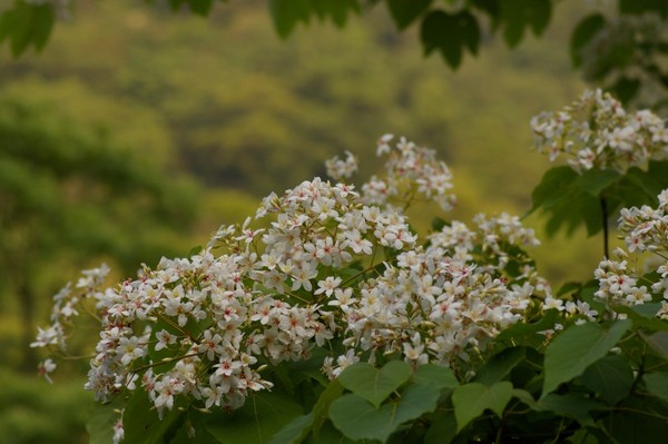 油桐花極易掉落,一邊拍就一邊掉在身上或落在四周,